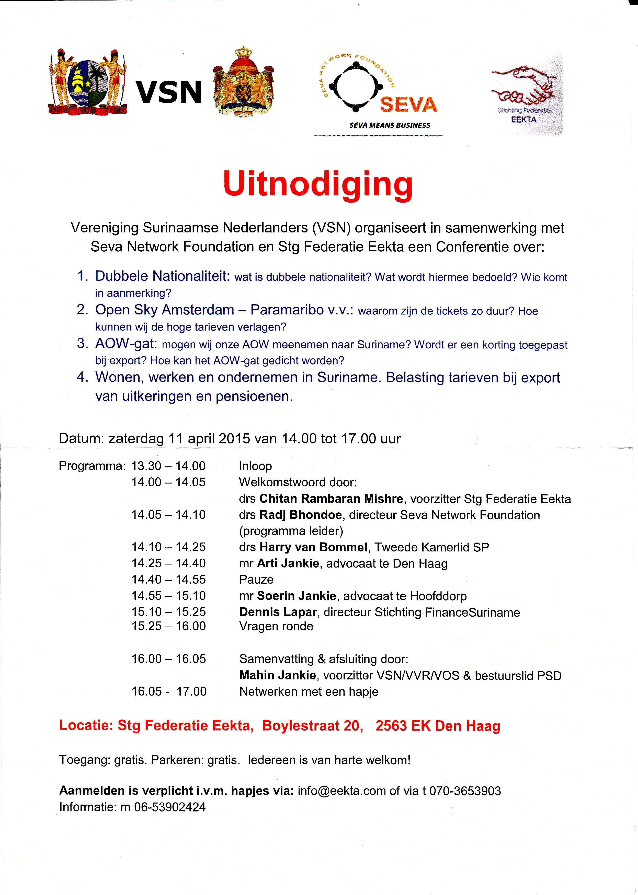 scandoc001.jpg Flyer Conferentie Suriname d.d. 11 april 2015 Stichting Federatie Eekta